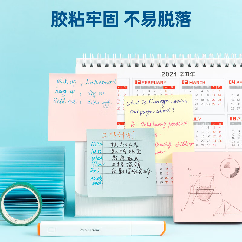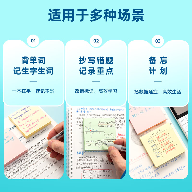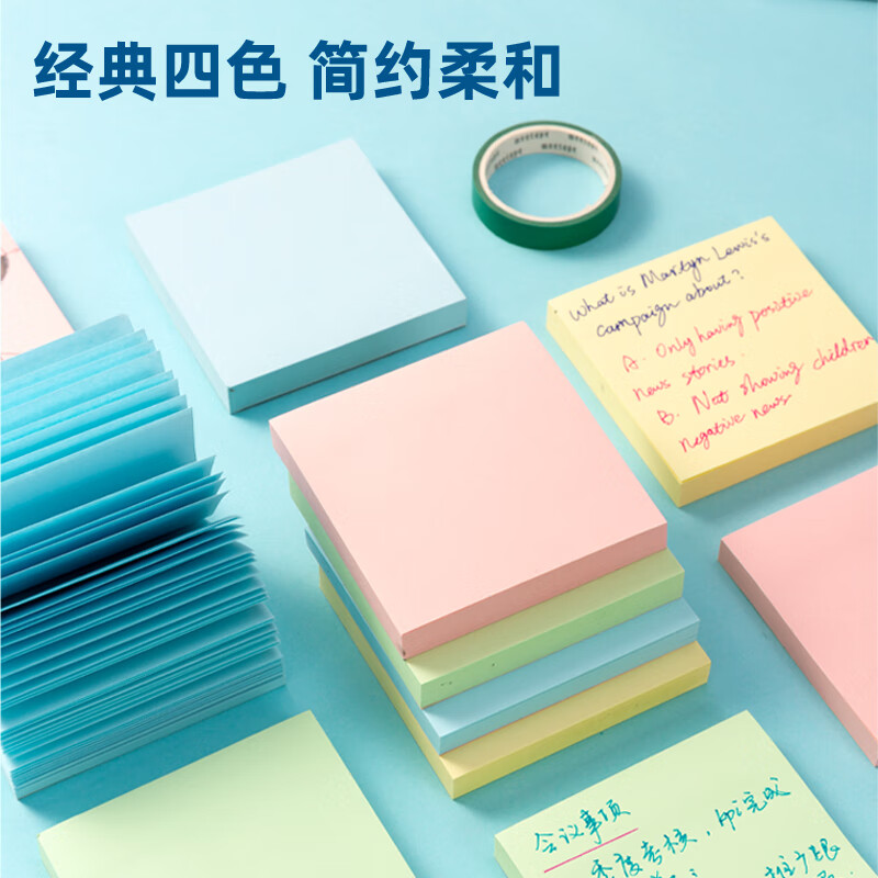 得力(deli)400页4色简约便利贴便签纸76*76mm便签本/记事贴/自粘留言本办公用品BT251